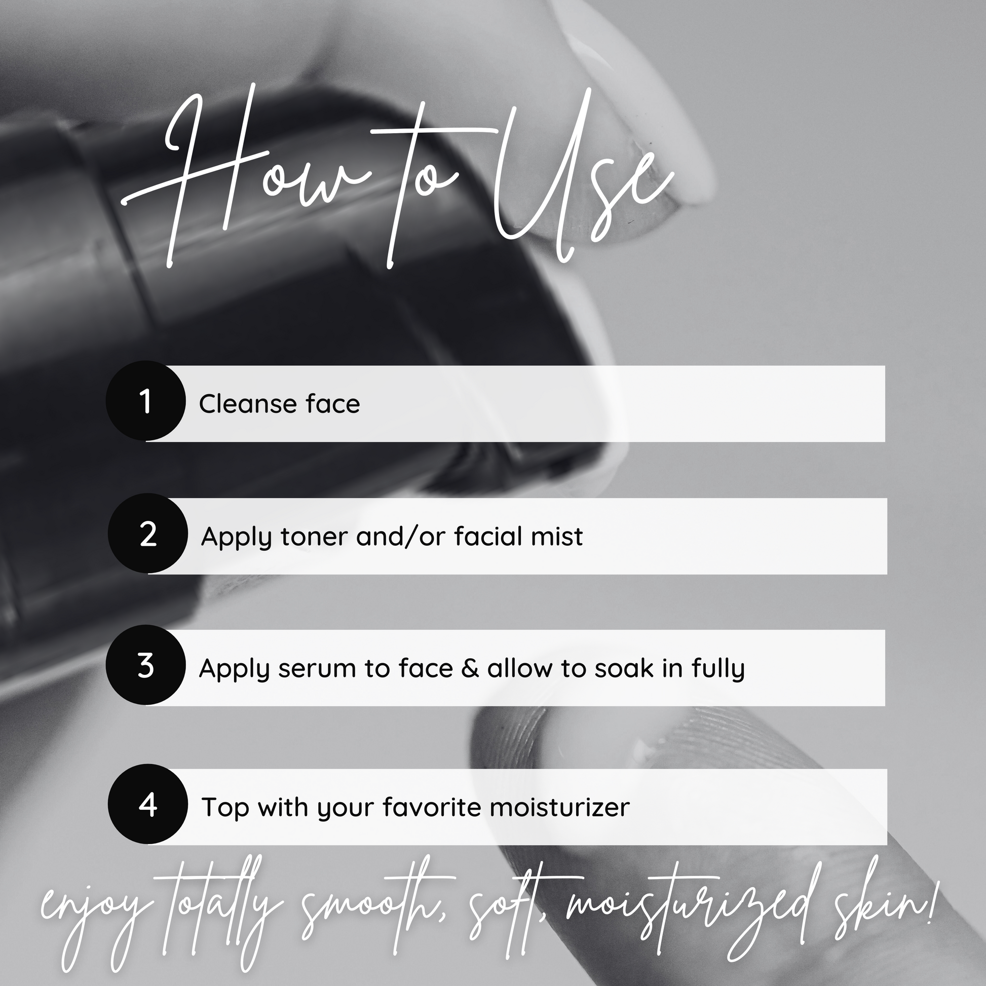 How to Use: After toning/misting, apply a few drops of the serum to clean, dry skin, gently massaging it into the face and neck. Use daily, morning and night, to achieve the best results.