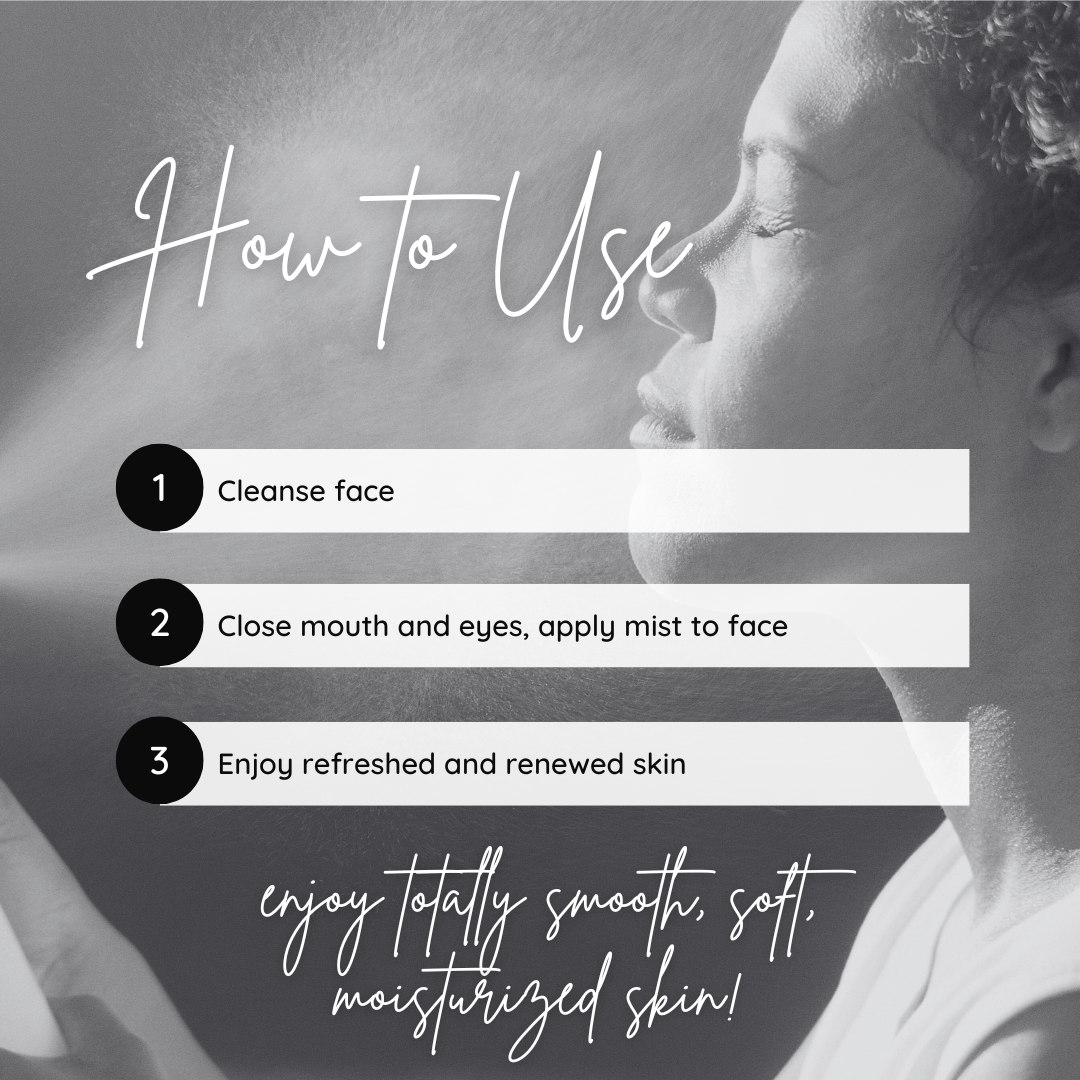 How to Use: Hold the mist 8-10 inches away from your face and spray evenly, avoiding the eye area. Use as part of your skincare routine after cleansing or whenever your skin needs a refreshing boost.